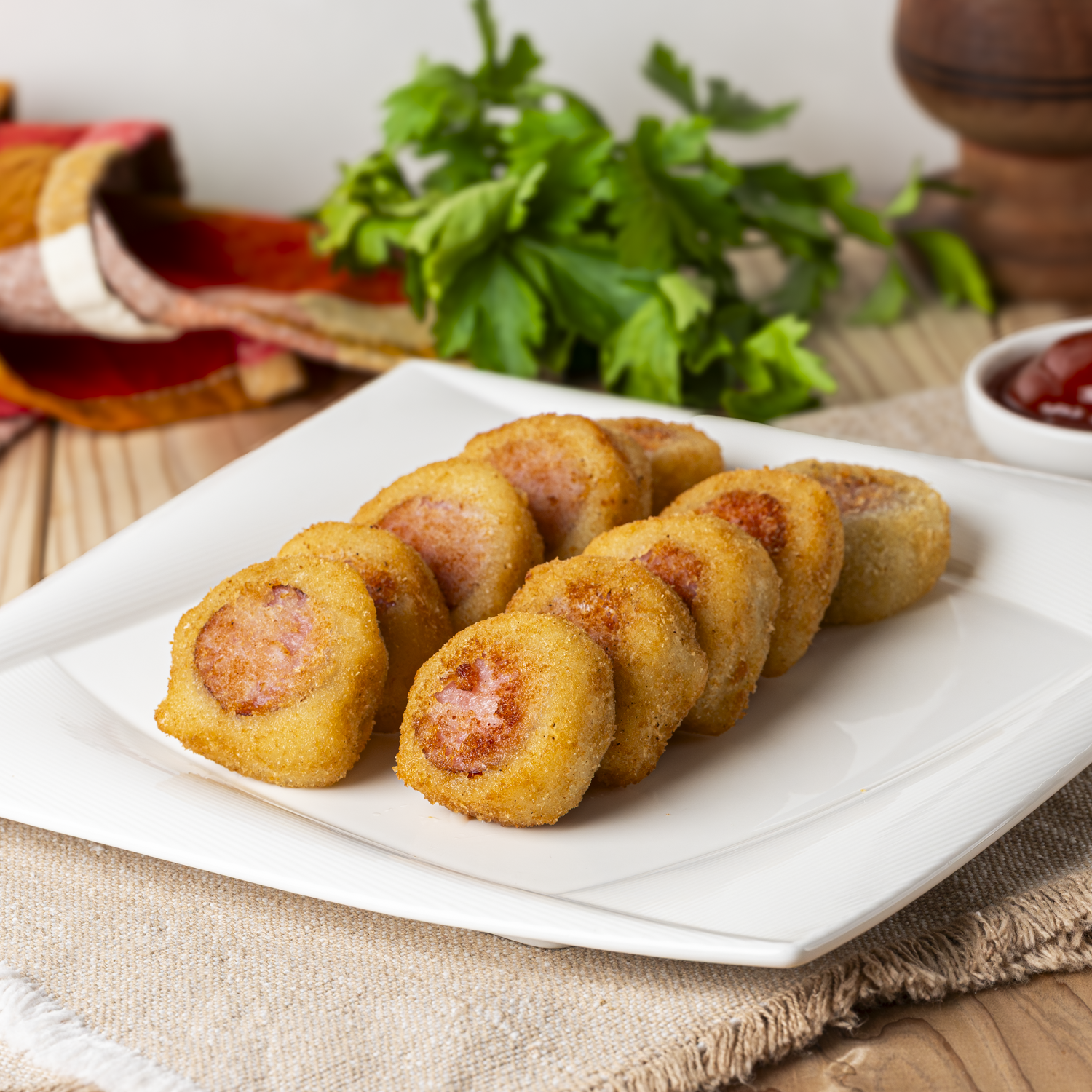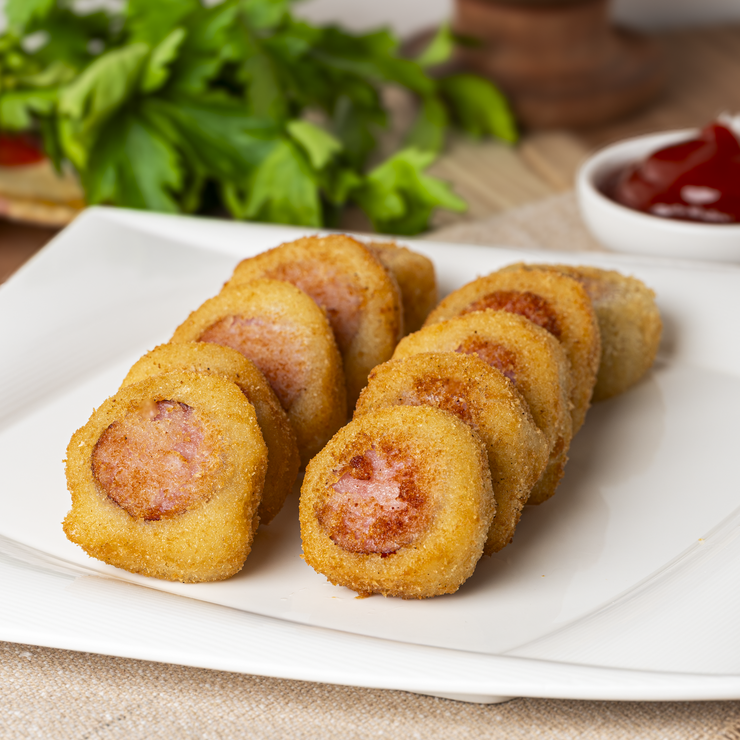 Esse bolinho combina o sabor intenso da linguiça defumada com uma massa suave e dourada.