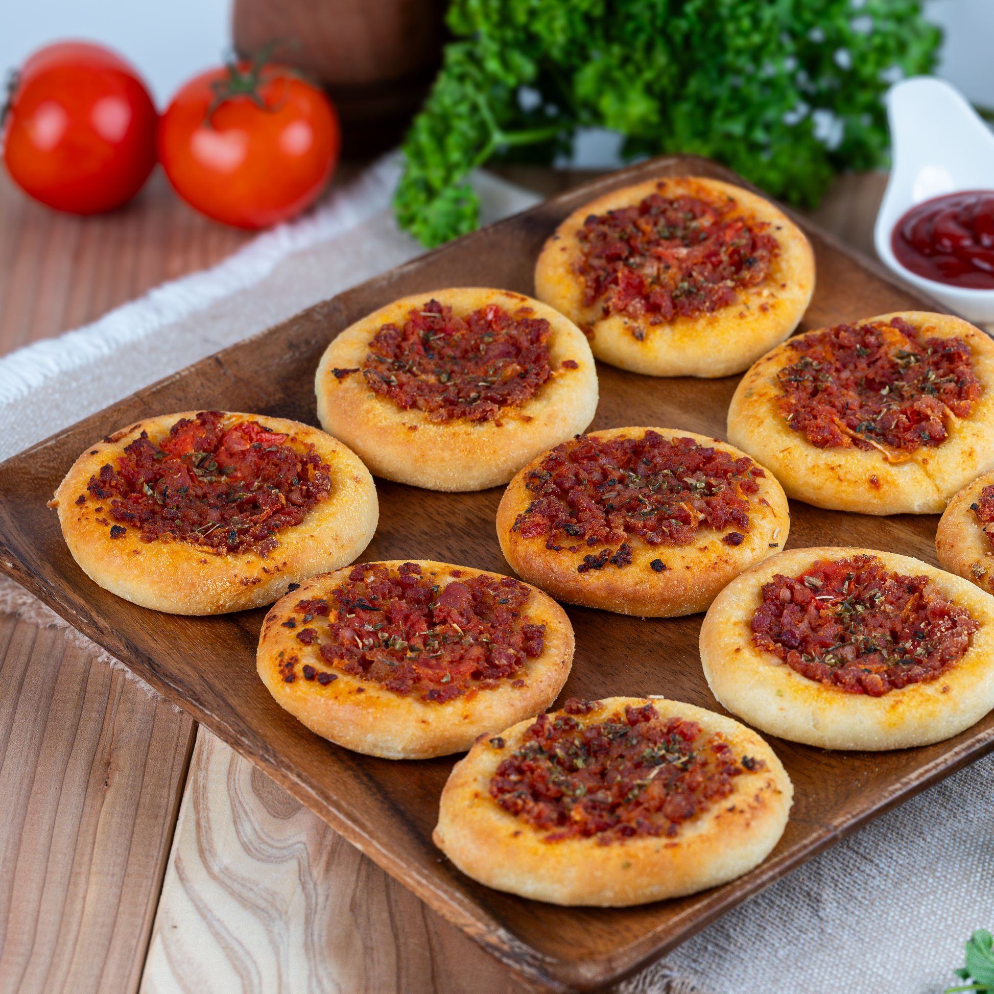 Nossa Esfiha Aberta de Calabresa é feita com massa leve e macia, recheada com calabresa temperada no ponto certo.